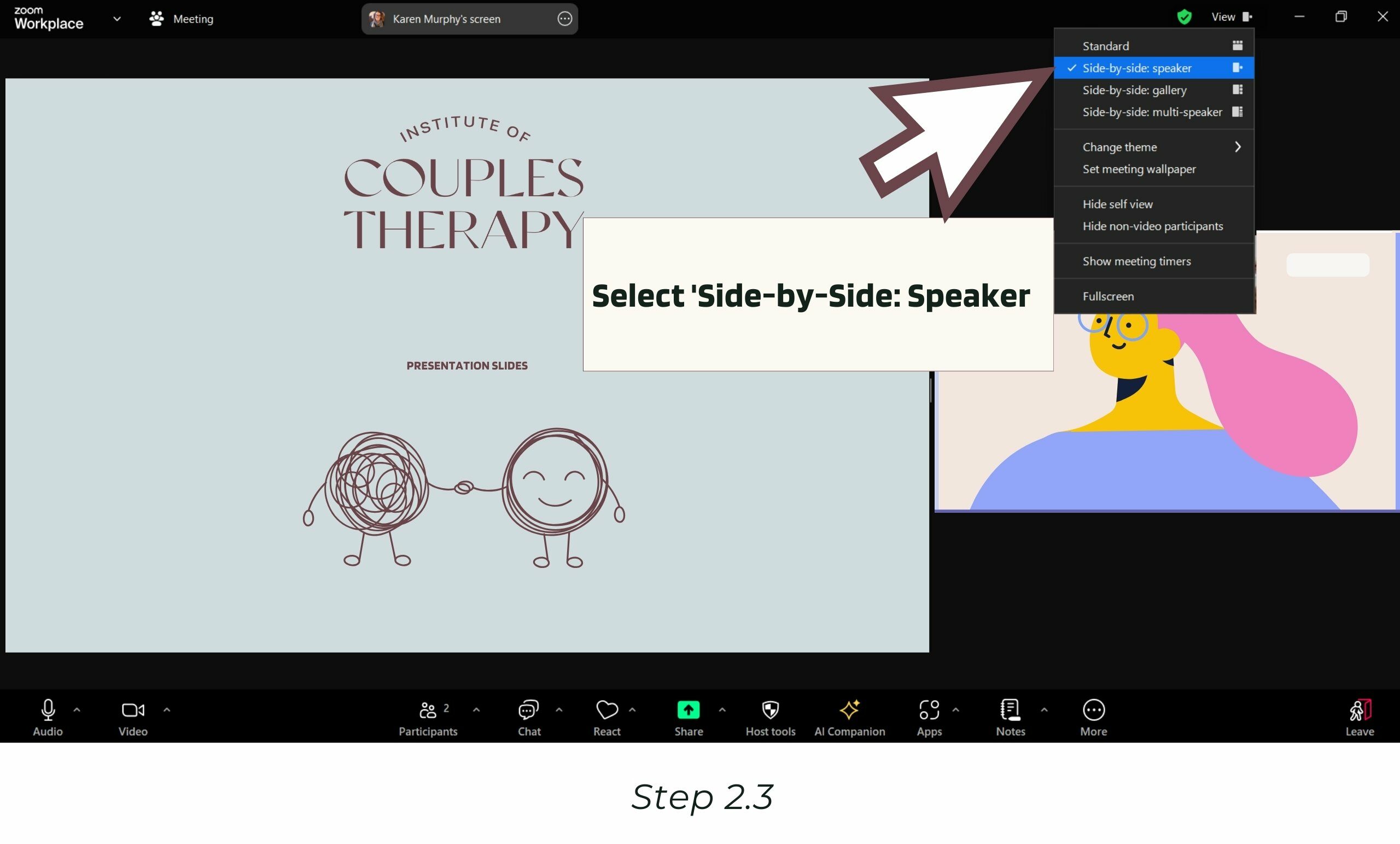 3. Select ‘Side-by-Side: Speaker‘ from the drop-down menu.