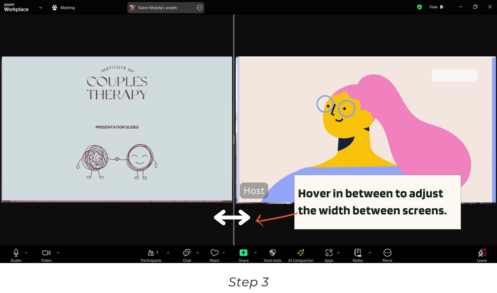 3. Click and drag the bar to the left or right to adjust the width of the presentation screen and the speaker screen according to your preference.
